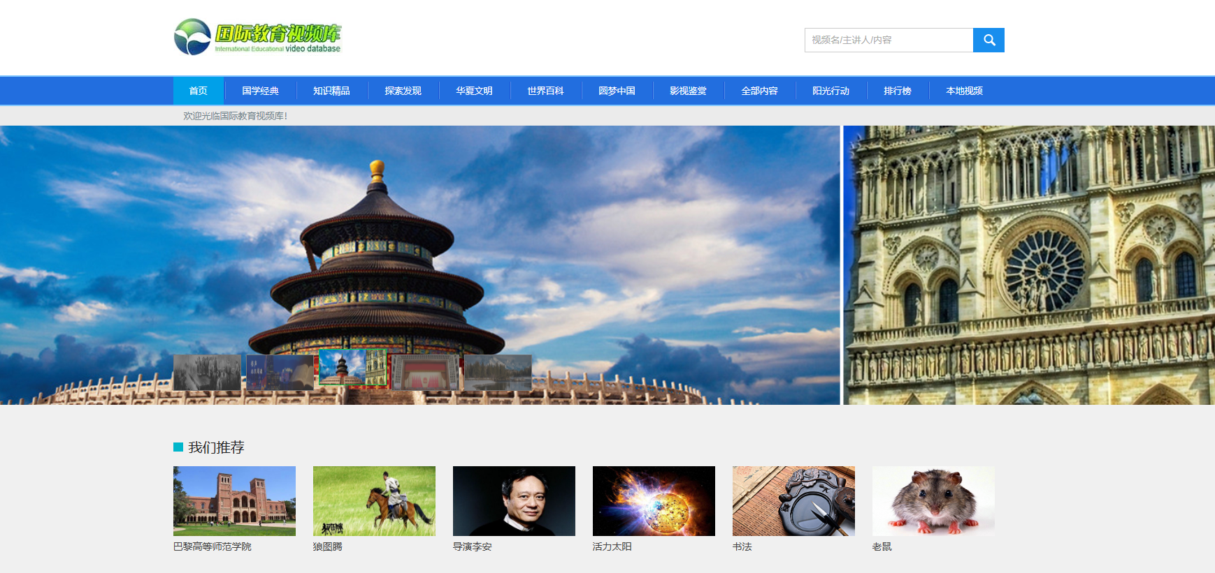 雅乐国际教育视频库是一套功能强大、内容丰富的多媒体视频点播系统,共有7大子库,200多个系列,3000多个节目,10000多个视频。专门针对学校图书馆读者研发,可满足不同用户收看知识类课堂、科教类纪录片、教学课件、历史传奇、社会百科、经典影片等视频内容的需求,通过生动、直观的影像使读者树立正确的人生观,在增长见识、获取丰富知识的同时,接受系统、专业的知识引导。