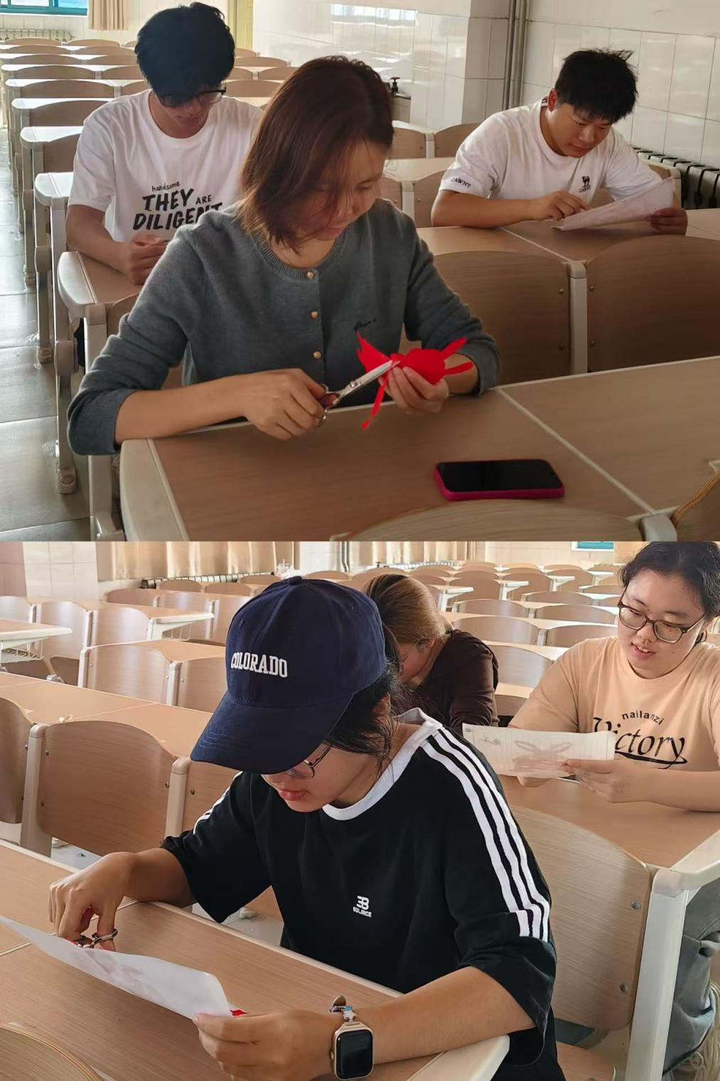 比赛时,同学们全神贯注。时而沉思构思,时而专注剪裁,普通红纸在巧手下变成精美作品,每幅都饱含对中秋文化的理解与情感。